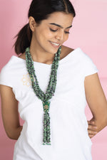 Gemstone Chip Necklace, Ruby Josite with onyx pendant with kundan stone work